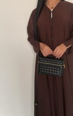 Simple brown abaya with buttons designs , made from light nada fabric ,it comes with a matching shila, suitable for work and everyday use .