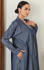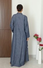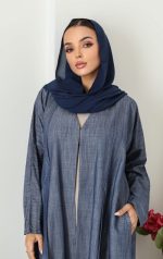 A light and loose jeans abaya that’s comfy and classy for everyday wear. With side pockets and matching sheila to complete your look .