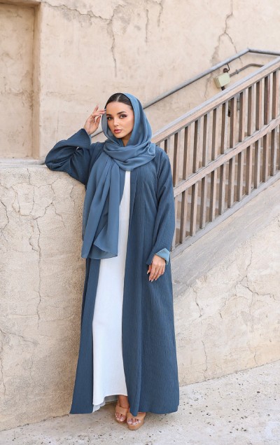 An open abaya with a stylish double face design, crafted from black crepe and chiffon adorned with a chic leopard print. It offers a bold and elegant look and comes with a matching sheila, without an inner dress.