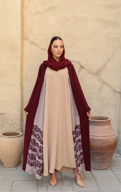 MAROON DOUBLEFACE ABAYA
