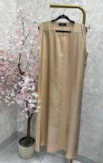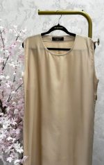 Simple beige sleeveless inner dress with a simple design, crafted from soft Nada fabric for ultimate comfort. Note: The inner dress is 1 inch shorter than the standard size.