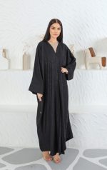 .عباية بحرينية سوداء مصنوعة من قماش عزيزي الا نيق ، تاتي مع شلية متناسقة لمظهر اكثر تالق