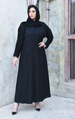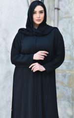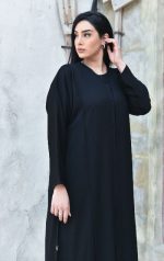 Simple black abaya with embroidery made of zoom fabric comes with sheila .