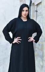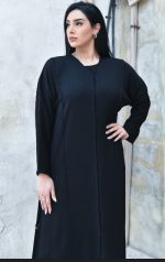 .عباية سوداء مصنوعة من قماش زوم ، مزينة بتطريز خفيف تاتي مع شيلة متناسقة