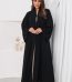 An elegant black  winter abaya adorned with silver details on the sleeves for a refined touch, made of winter jacquard fabric, and paired with a matching sheila and belt for a chic, complete look.